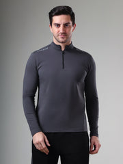 Quarter Zip Solid Full Sleeve T-Shirt (Cotton Feel) Wine - S